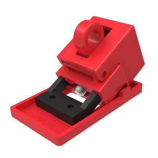卡箍式断路器锁由聚丙烯和高强度改进型尼龙材料制成,适用于单孔和内置跳闸装置的多孔断路器;使用翼型螺钉将锁具固定在开关钮上,然后将挡盖扣紧到翼型螺钉上锁定以免松动