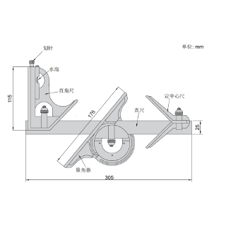 组合式角度尺是一种用于机械加工、木模加工中角度、长度、高度测量及中心定位的常用计量器具。